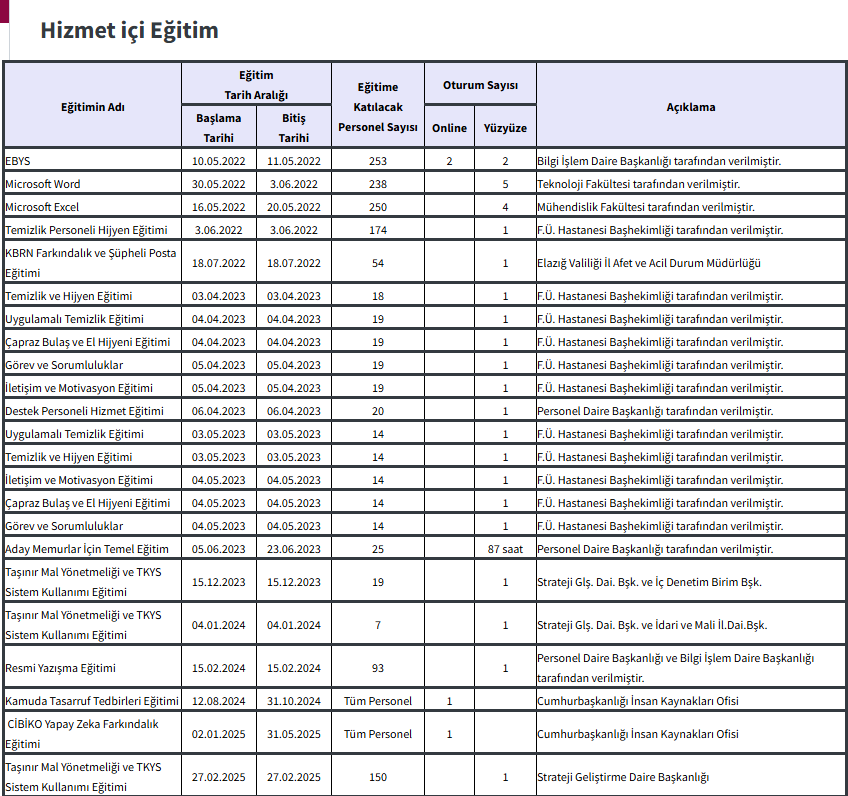 A.3.2.K3 – Hizmet içi eğitim uygulamaları listesi
